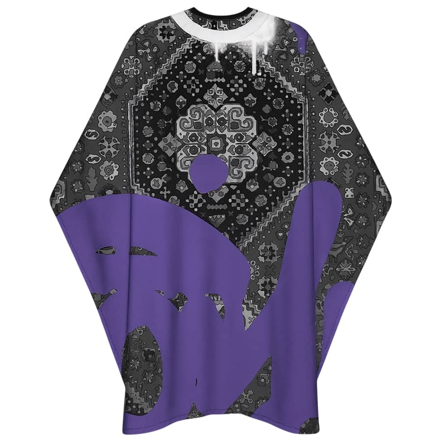 Profesionálny barber pláštenka MARMARA BARBER Fly Carpet Purple - vodeodolná, antistatická a s elastickým golierom. Štýlový dizajn a maximálny komfort pre zákazníkov aj barberov.
