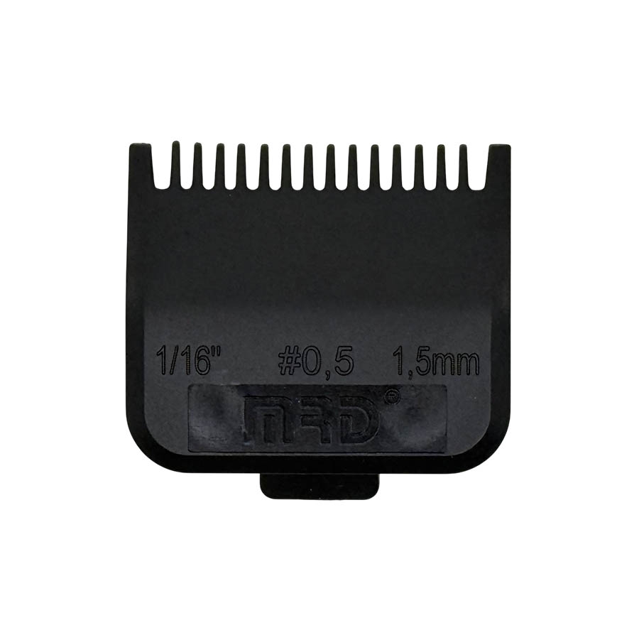 Pevný, plastový náhradný nástavec vhodný pre všetky strihacie strojčeky (clippers) značky MRD Pro. Výška strihu je 1,5 mm. Dodávaný v čiernej farbe.