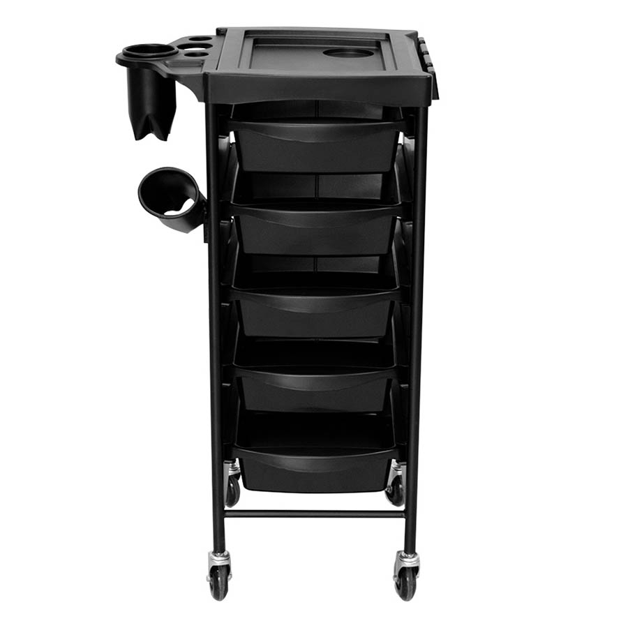 Profesionálny pojazdný kadernícky vozík STOR z odolného ABS s kovovou konštrukciou, 5i vyberateľnými zásuvkami, horným organizérom a držiakmi na fén. Stabilný, praktický a pripravený držať tempo v každom barber shope aj kaderníckom salóne.