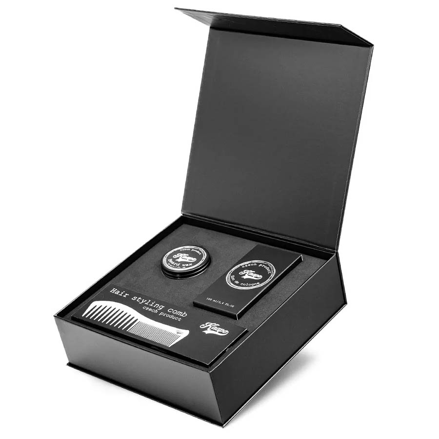 Darčeková sada Kaapo, ktorá každého muža, ktorý sa stará o svoj vzhľad. V elegantnej darčekovej kazete je uschovaná kolínska voda, vosk na bradu a hrebeň na vlasy. Štýl v darčekovom balení.