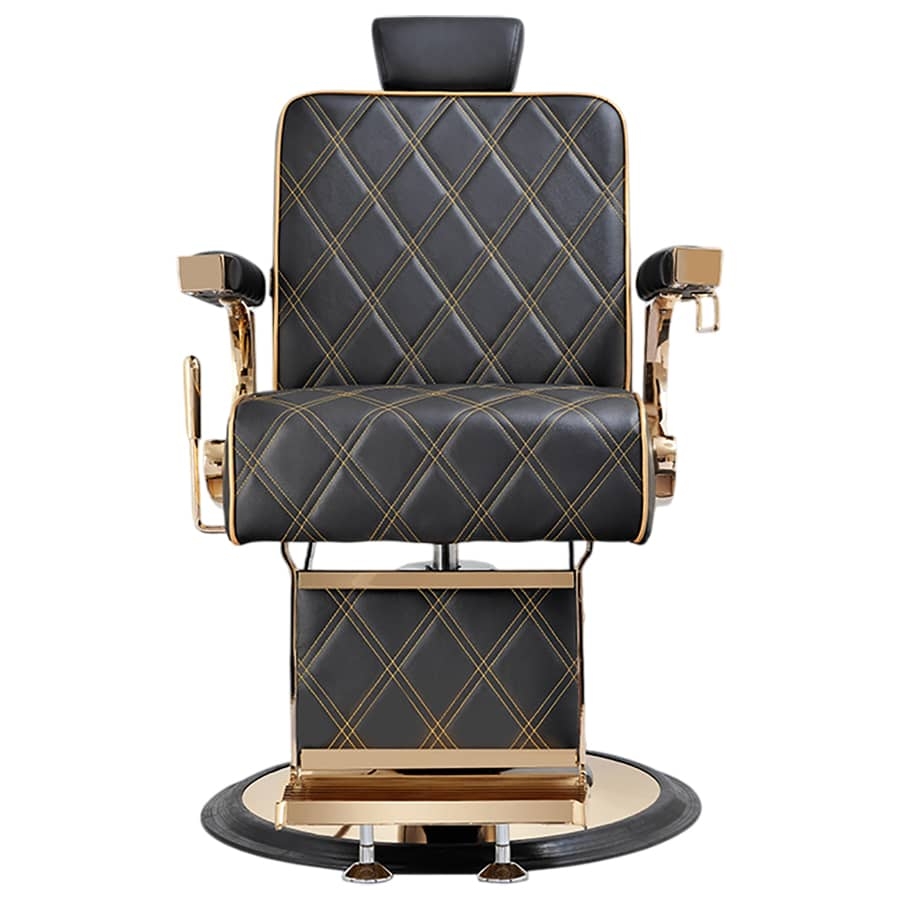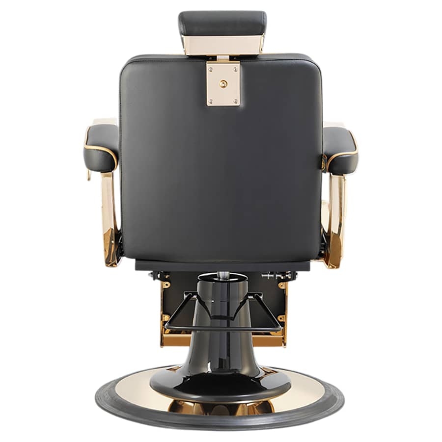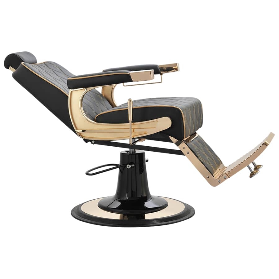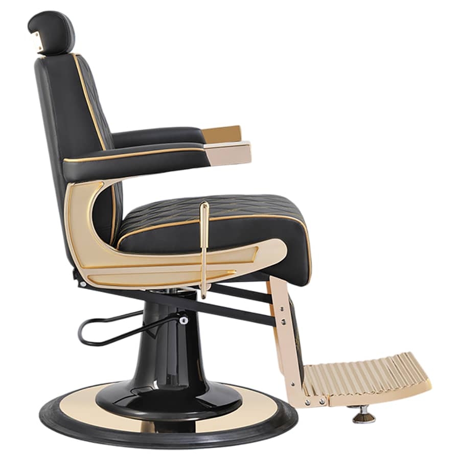 Luxusné holičské kreslo CREW GOLD spája robustnú konštrukciu, pohodlný sedák s pružinami a nastaviteľnú opierku hlavy. Zlaté detaily dodajú barber shopu štýl a zákazníkom maximálny komfort pri každej návšteve.