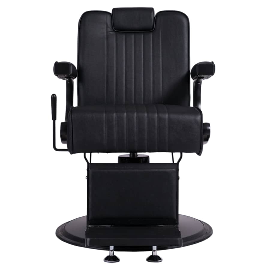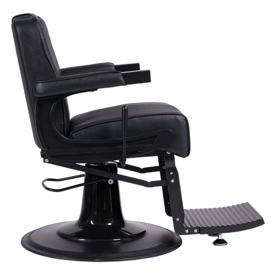 Barber kreslo FADE Black spája pevnú kovovú konštrukciu, luxusný čierny dizajn a pohodlný sedák s pružinami. Hydraulická pumpa a sklopné časti zabezpečia komfort pre klientov aj profi využitie v barber shope či holičstve.
