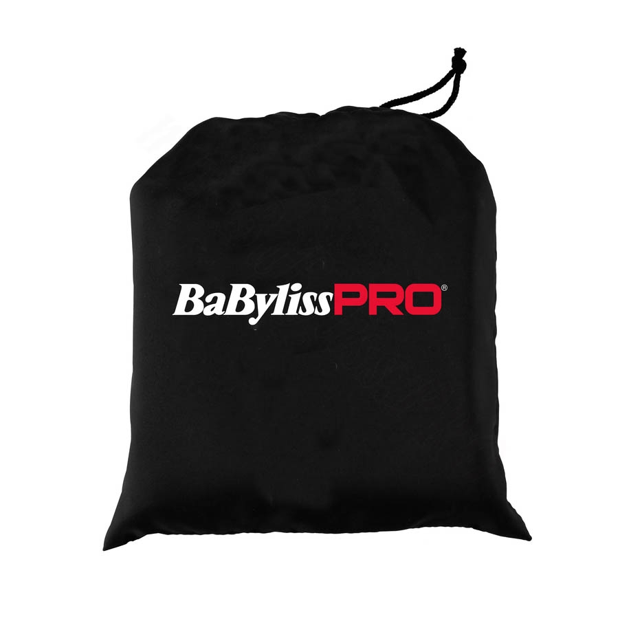 Profesionálna kadernícka pláštenka na strihanie BABYLISS PRO v čiernej farbe s logom značky na prednej strane. Pláštenka má zapínanie na cvoky a praktické pútko na zavesenie. Rozmery pláštenky sú 110 x 140 cm.