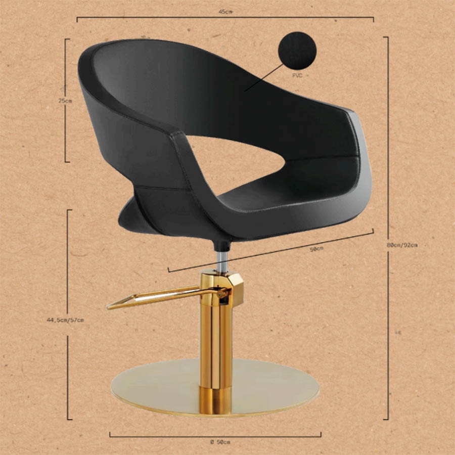 Luxusné kadernícke kreslo AURIC R Gold & Black kombinuje elegantný vzhľad so skutočným pracovným výkonom. Pohodlná PU pena, kovová konštrukcia, zlatý chrómový podstavec a hydraulika s brzdou. Štýl, ktorý vydrží náročnú prevádzku každého kaderníctva.