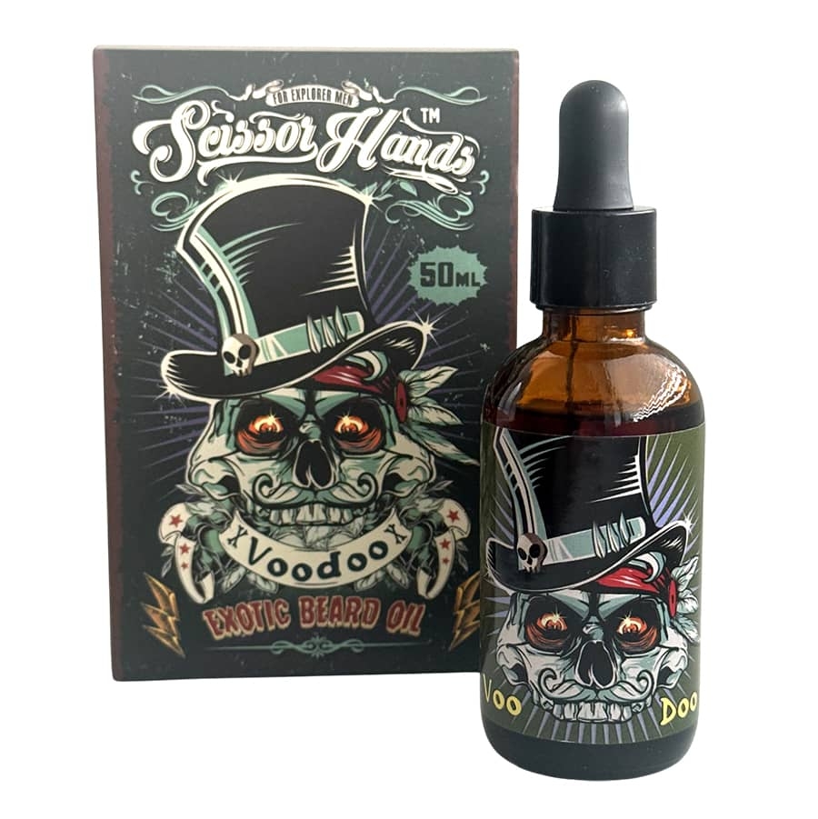 VooDoo olej vás prekvapí ľahko drevitou vôňou skombinovanou s vôňou rannej rosy, časom sa mení na ľahko kvetinovú, ale stále mužnú vôňu. Dizajn fľaštičky je veľmi vydarený, rovnako ako pri všetkých produktoch od značky Scissor Hands. Tentokrát je inšpirovaný, ako už z názvu vyplýva, vúdú náboženstvom. Pre zdravé a mužné brady už teraz nepotrebujete voodoo bábiku, stačí vám VooDoo olej!