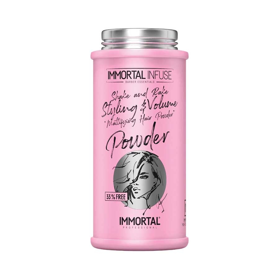Púder na vlasy IMMORTAL s ľahkou fixáciou a matným vzhľadom, ktorý poskytuje extra objem a prirodzený styling.